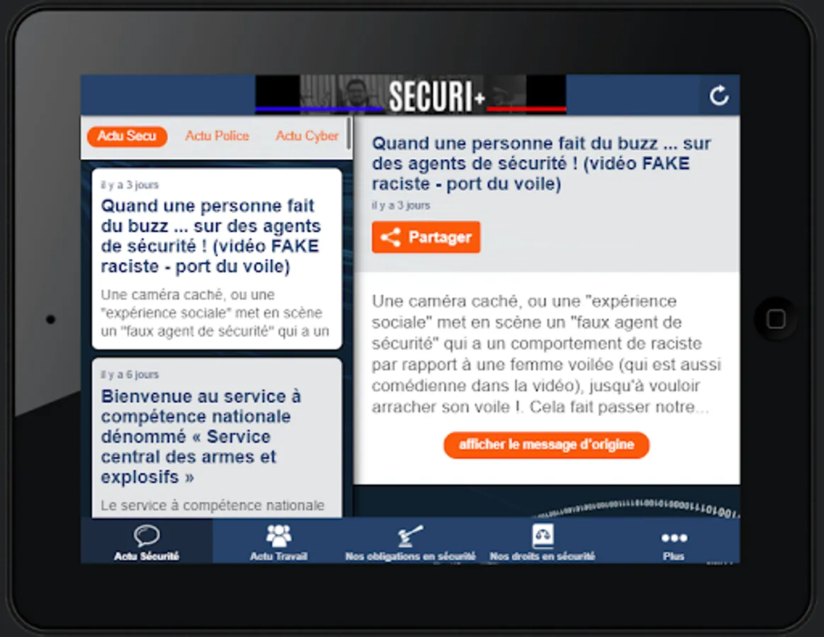 Vous découvrirez aussi le cadre légal d'intervention (palpation , fouille, arrestation, voie publique, ...) , les droits et devoirs des acteurs de la sécurité (code de déontologie, contrôle d'identité ou de coffre de véhicule), les évènements à venir (colloque, webinar, ...), les vidéos liées à la sécurité privée ...