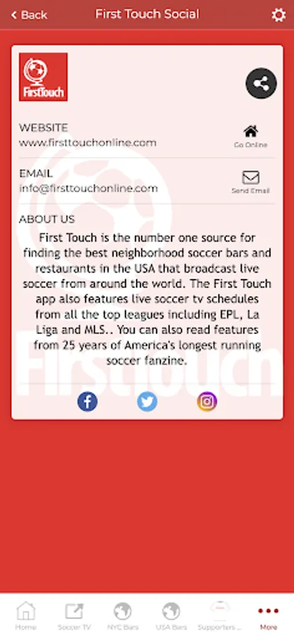 Keep track of live scores and read featured soccer stories from First Touch magazine while you're watching.