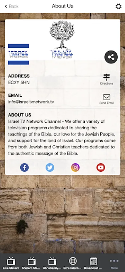 Israel TV Network Channel - We offer a variety of television programs dedicated to sharing the teachings of the Bible, our love for the Jewish People, and support for the land of Israel. Our programs come from both Jewish and Christian teachers dedicated to the authentic message of the Bible.