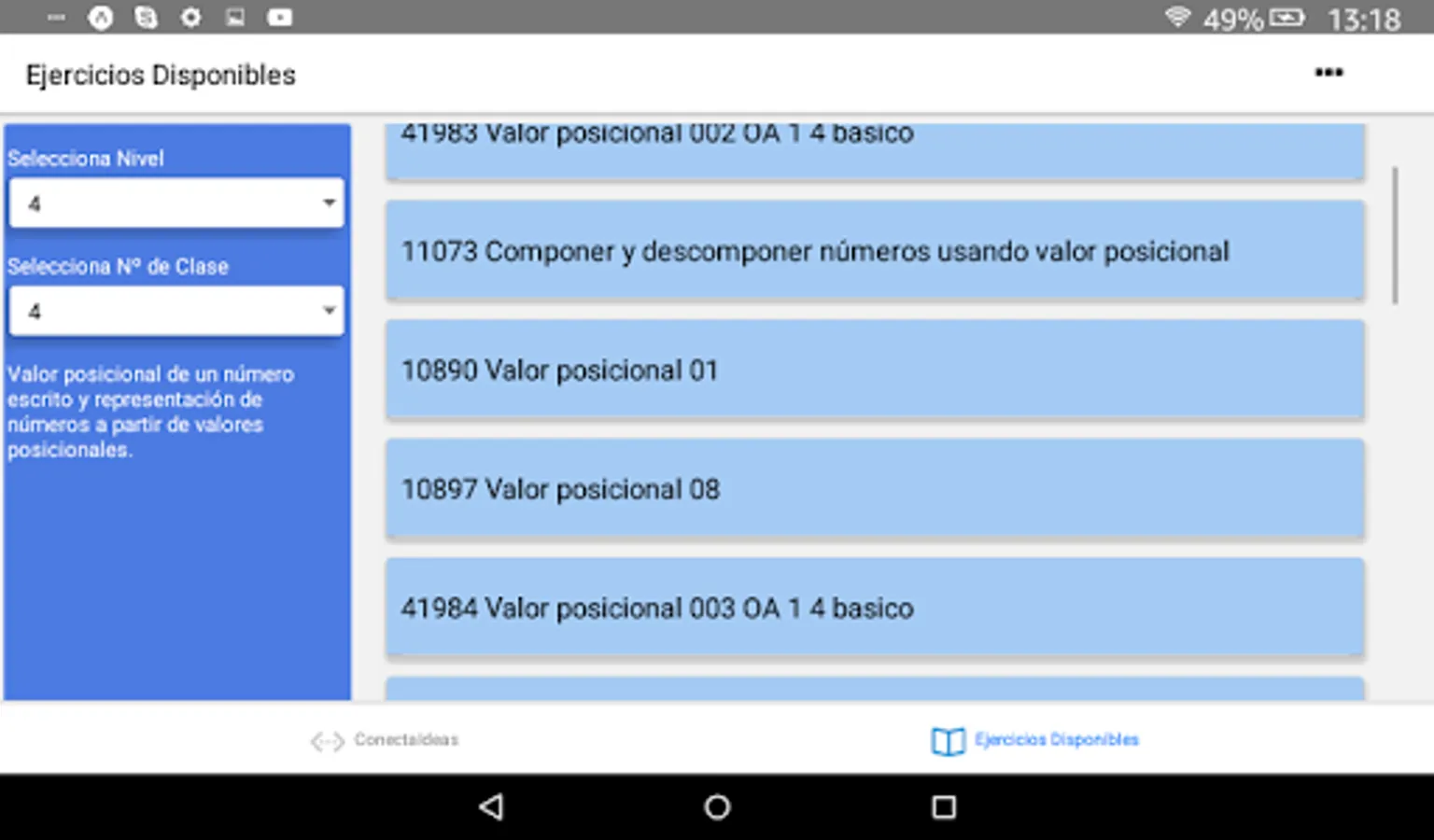Application to do exercises from Conecta Ideas. Requires a student account at www.conectaideas.com