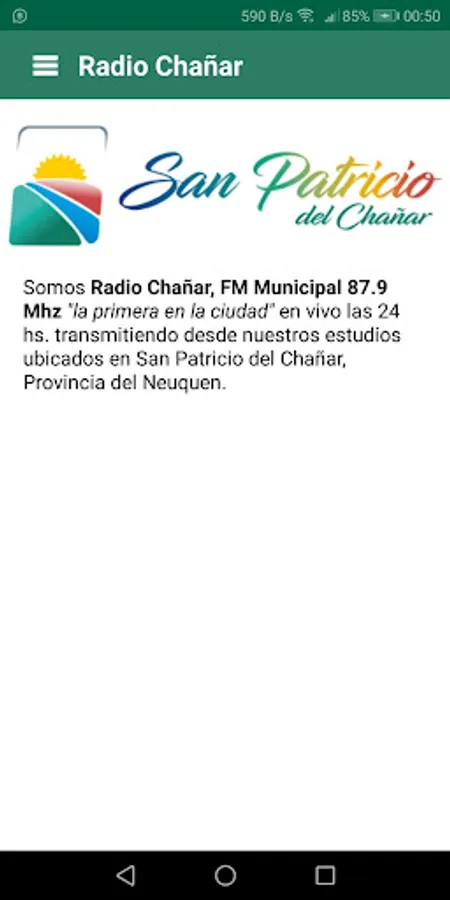 We are Radio Chañar, FM Municipal 87.9 Mhz "the first in the city" live 24 hours. broadcasting from our studios located in San Patricio del Chañar, Neuquen Province.