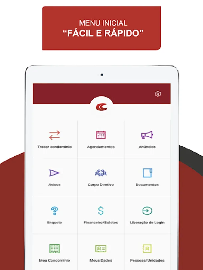 After downloading and installing it on your smartphone, connect using your Login and Password data from your condominium portal (consult your administration if necessary) and navigate through the main menu through the available resources.
