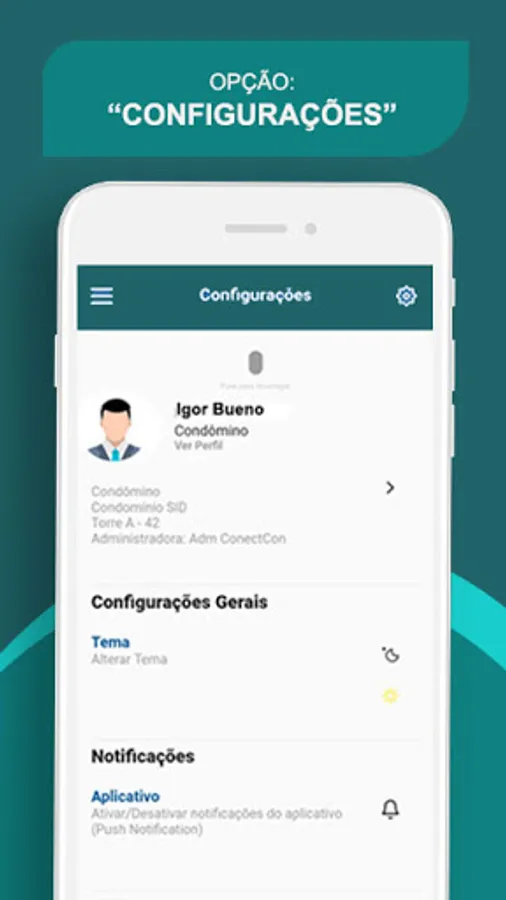 After downloading and installing on your smartphone, make the connection using your Login and Password data from your condominium portal (consult your administration if necessary) and navigate the main menu through the available resources.