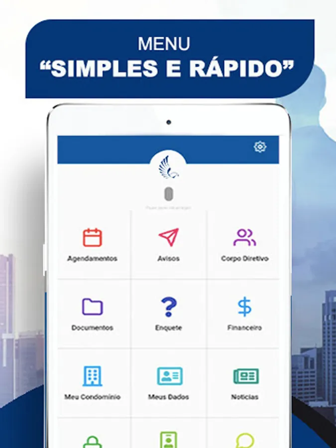 After downloading and installing on your smartphone, make the connection using your Login and Password data from your condo's portal (consult your administration if you need to) and navigate through the main menu through the available resources.