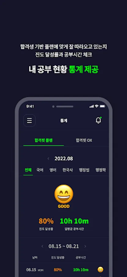 Study plan by serial / period of actual successful students, Daily OX that allows past learning, and even my study statistics