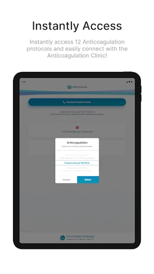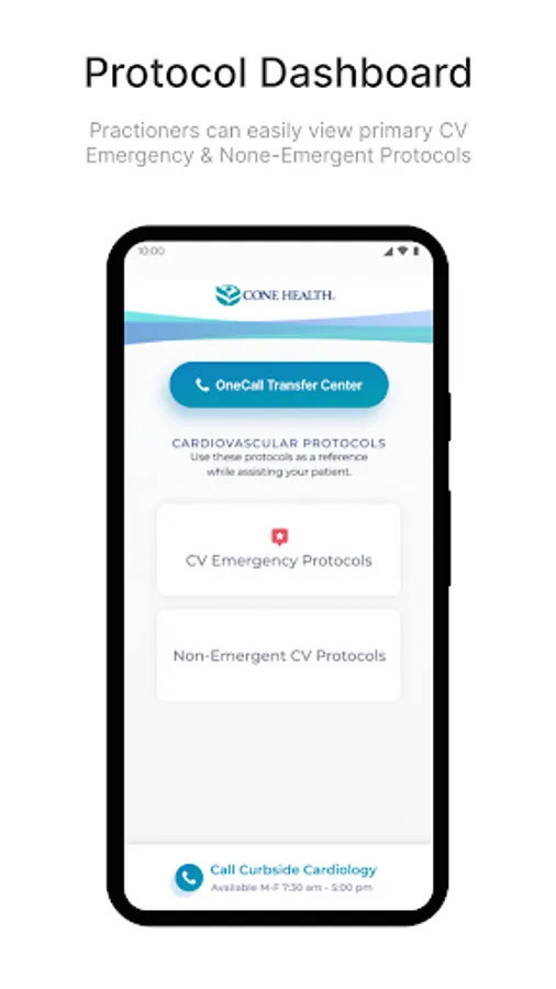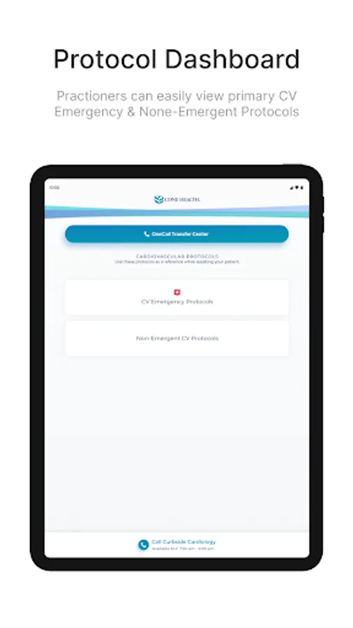 Designed for use by medical providers both to access cardiovascular care protocols developed by the Cone Health Heart and Vascular Center, and to connect quickly to Cone Health’s cardiovascular care services.