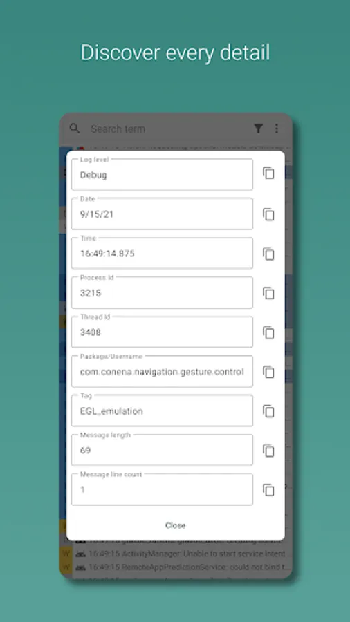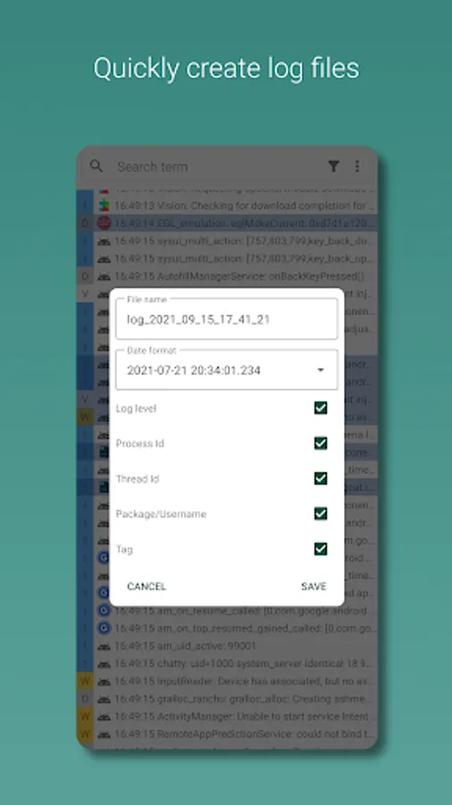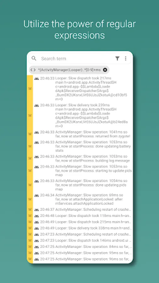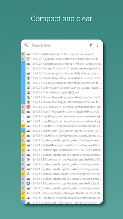 Filter, evaluate and save log files on mobile just like on desktop. The most powerful and fastest log reader for Android.