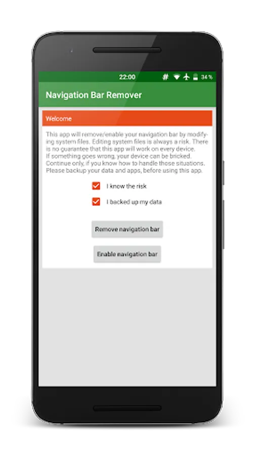 Before removing the navigation bar, make sure you have an alternative way to control your phone!