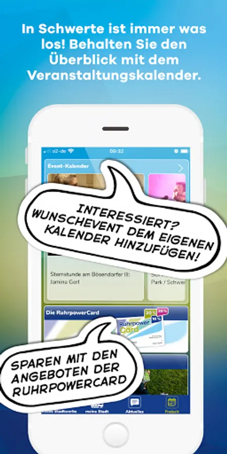 - Schwerter event calendar with many functions: export to your own calendar, navigation to the location and contact options for the organizer, ticket ordering