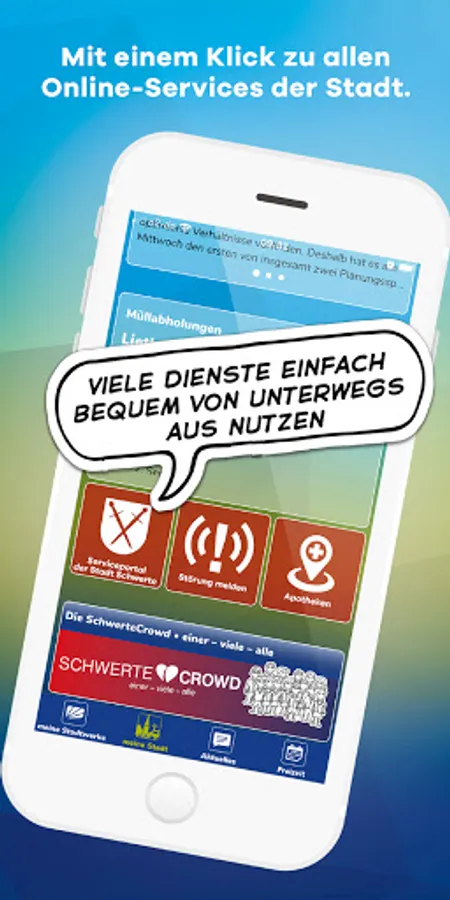 Always well informed about what's going on in Schwerte. The free "Schwerte APP" provides all information about the Hanseatic city on the Ruhr and makes everyday life easier with some useful functions. With the app, all local news is always at hand.