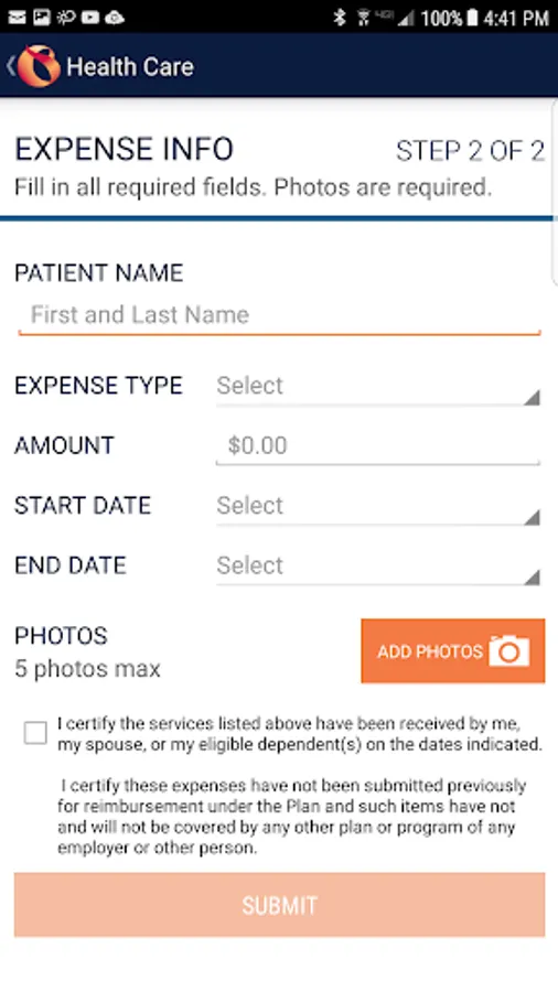 •Use your camera to take and submit photos of itemized receipts or other supporting documentation