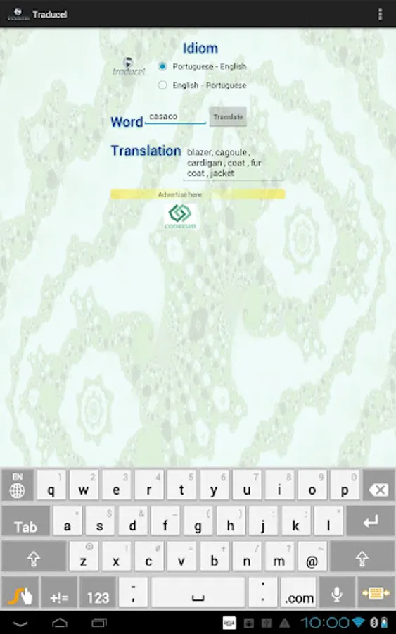 Traducel is a simplified dictionary that provides fast at least one word matching between Portuguese and English.