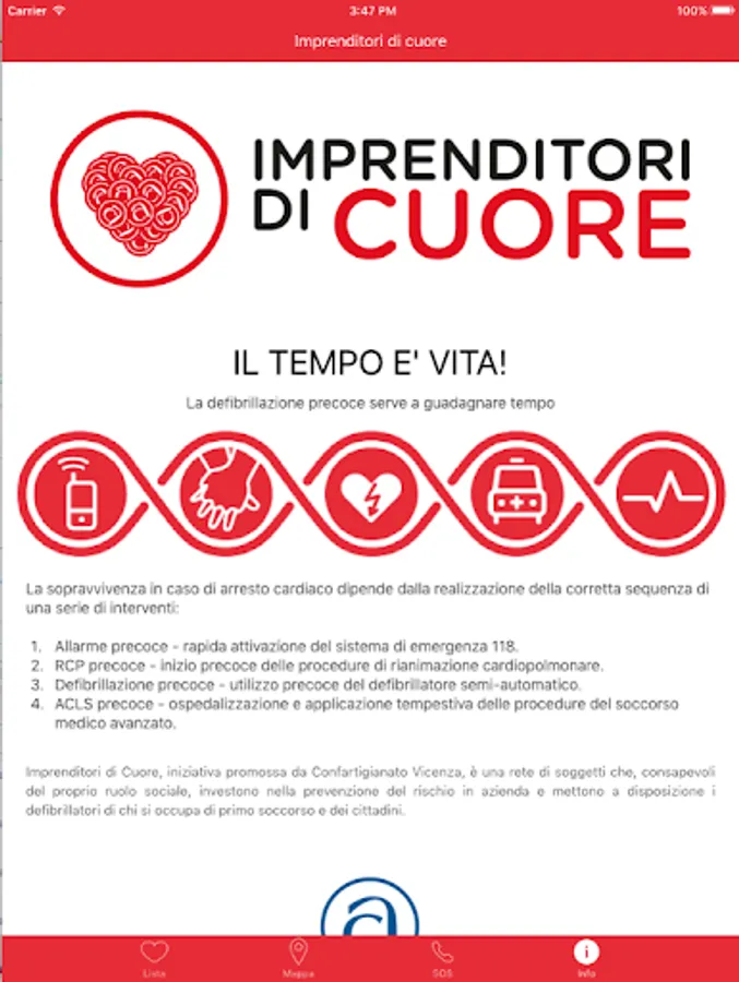 Heart of entrepreneurs, an initiative promoted by Confartigianato Vicenza, is a network of individuals who, aware of its social role, investing in risk prevention in the company and provide defibrillators to those involved in first aid and citizens.