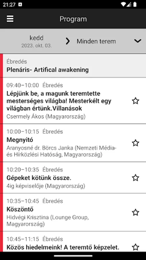 The official app for the use of Internet Hungary conference, you can browse the entire program. If the individual performances, marked as favorite forums to give notice of the application before they start. Also read a short description of all the performers in the conference.