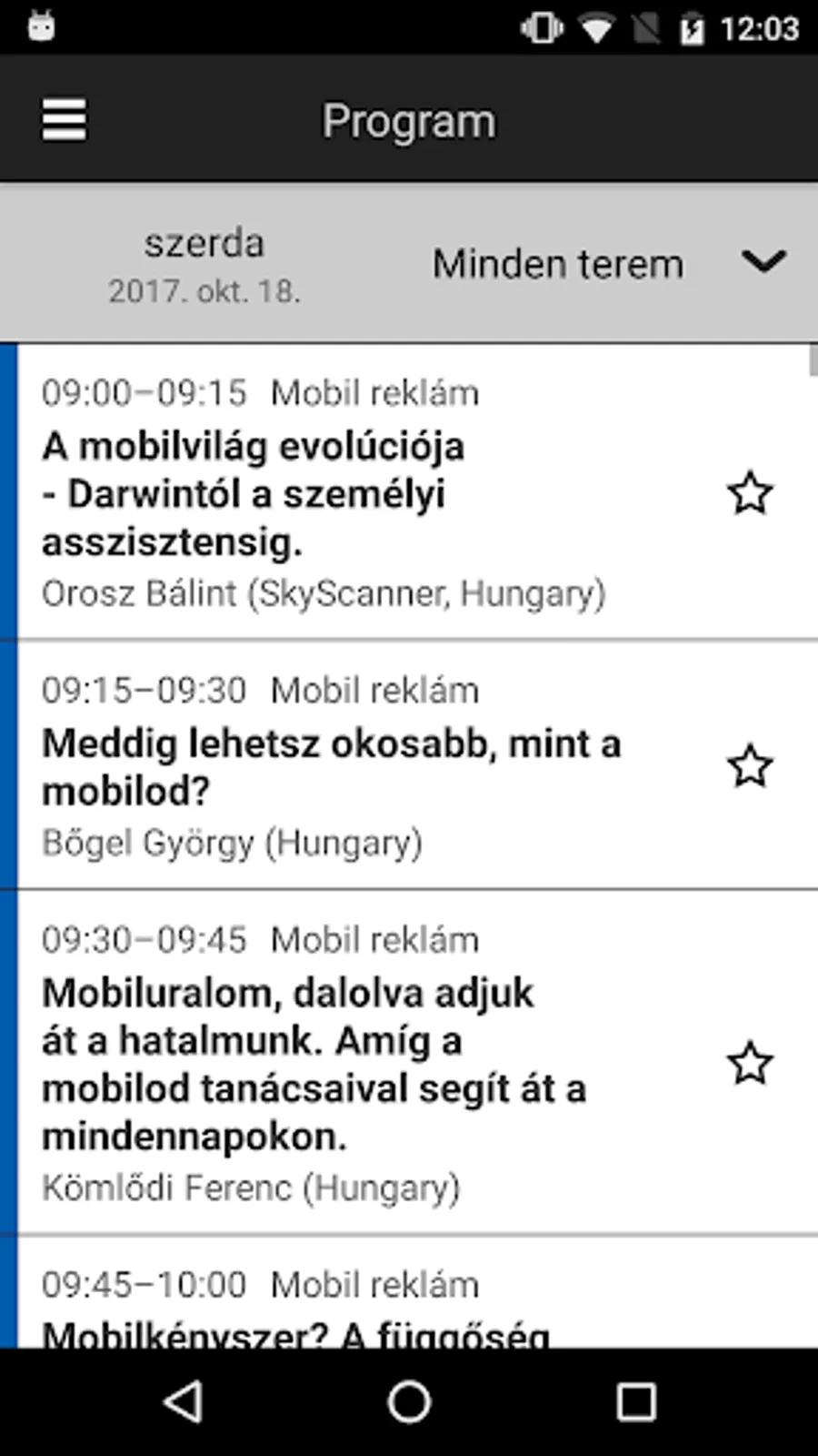 The official mobile app Hungary using a full program of the conference, you can browse. If the individual performances, favorite forums indicates, the application will notify you before they start. Also read a short description of all the performers in the conference.
