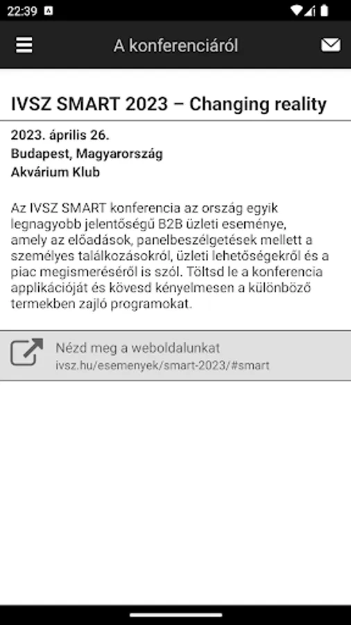 The IVSZ SMART conference is one of the country's most important B2B business events, which, in addition to lectures and panel discussions, is also about personal meetings, business opportunities and getting to know the market. Download the conference application and conveniently follow the programs taking place in the various rooms.