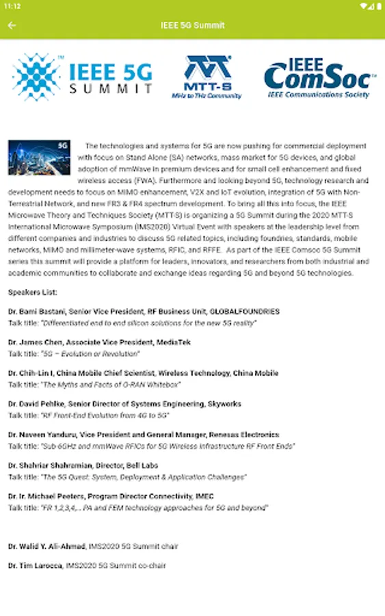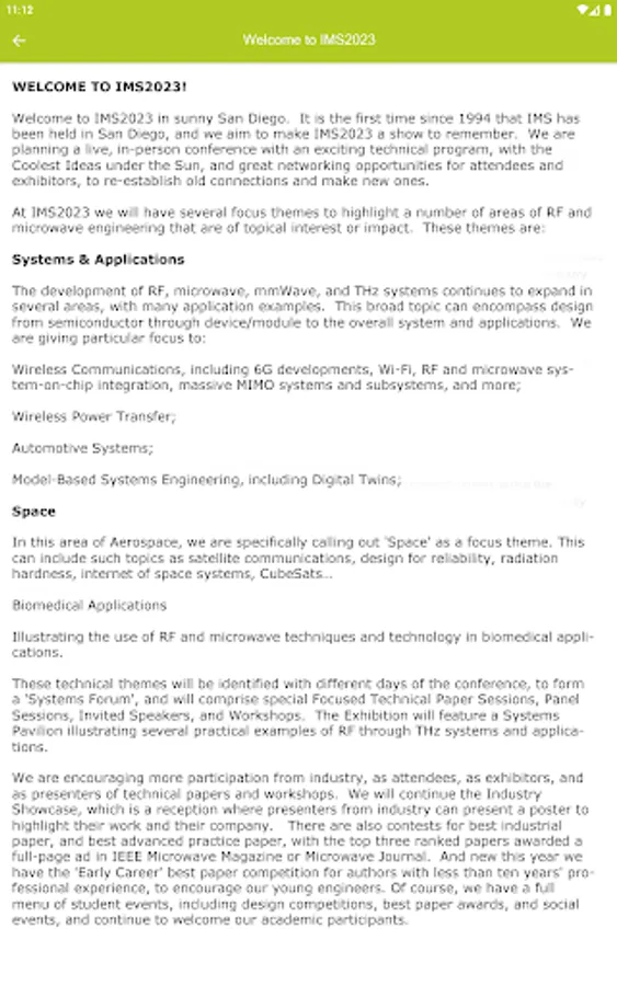 Updated for IMS Microwave Week 2023, this app enables you to carry the entire conference in your pocket. Check the schedule of events, access hundreds of technical papers, navigate the exhibition, or see what’s happening in sunny San Diego.
