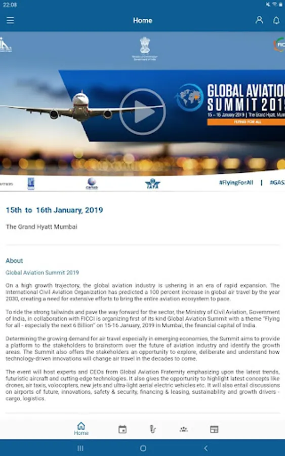 The growth of aviation in emerging economies has been unexpected. It has not only increased world trade activity by enabling faster and easier movement of passengers and goods, but has also provided jobs to millions of people. Presently, the global aviation industry is on a high-growth trajectory, ushering in an era of rapid expansion. To celebrate and focus on the challenges of 'Flying for All', especially the next 6 billion people, the Ministry of Civil Aviation, Government of India, is organizing for the first time the Global Aviation Summit in Mumbai, the financial capital of India, on 15-16 January, 2019.