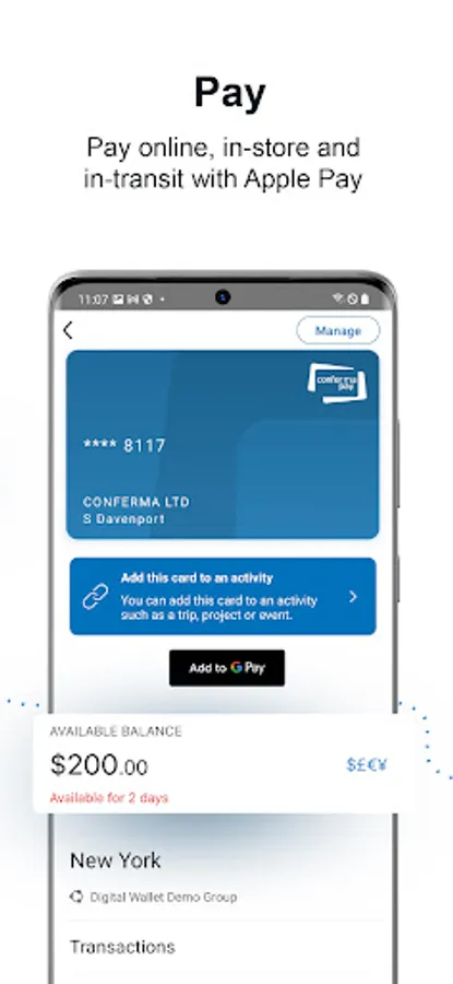 Conferma Pay is a cashless solution that brings secure, virtual payment cards to your mobile device for business purchases.
