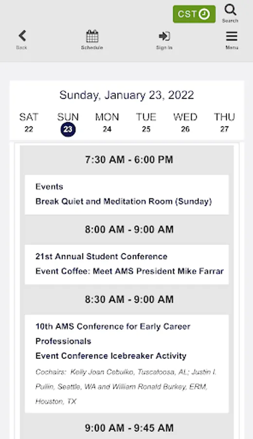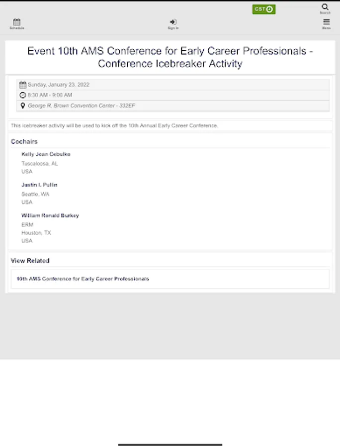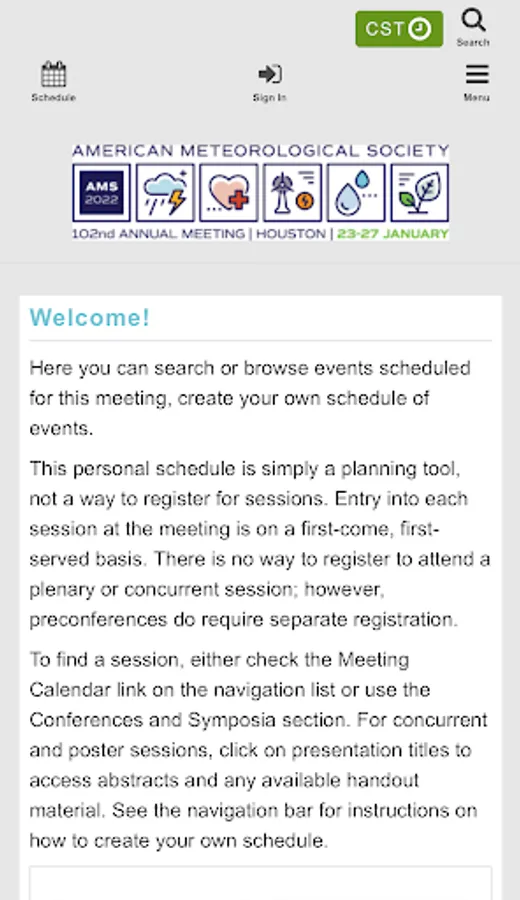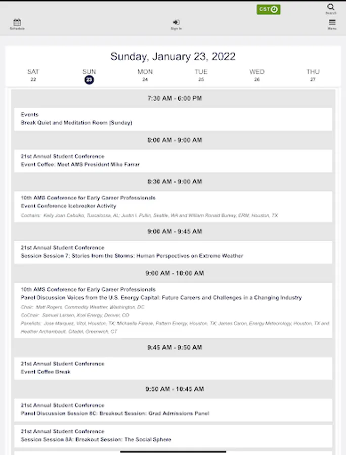The 102nd American Meteorological Society Annual Meeting will be held January 24-27, 2022, in Houston, TX, and virtually. Login to view Sessions and Papers saved as favorites. View schedules, locations, floor plans, and people. Attendees will now be able to facilitate their experience at the meeting using the mobile app.