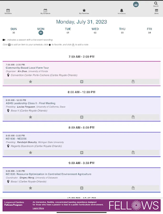 The 2023 ASHS Annual Conference will be held July 31st - August 4th, 2023, in Orlando, FL. Login to view Sessions and Papers saved as favorites. View schedules, locations, floor plans, and people. Attendees will now be able to facilitate their experience at the meeting using the mobile app.