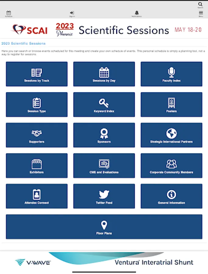 The SCAI 2023 Scientific Sessions will be held May 18th - 20th, 2023, in Phoenix, AZ. Login to view Sessions and Papers saved as favorites. View schedules, locations, floor plans, and people. Attendees will now be able to facilitate their experience at the meeting using the mobile app.
