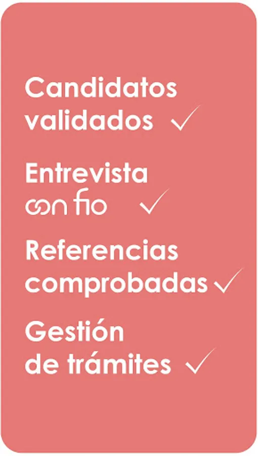 Confio is a platform that speeds up the process of finding trusted domestic personnel in Spain. You will quickly find the person of total confidence that adapts to your needs or the work that adapts to your expectations. In Confio we are the only ones to validate our professionals by interviewing and checking their references. You can see reviews from previous work in the profiles of our professionals. Confio is your community of more than 25k families and professionals in the safe and reliable home.