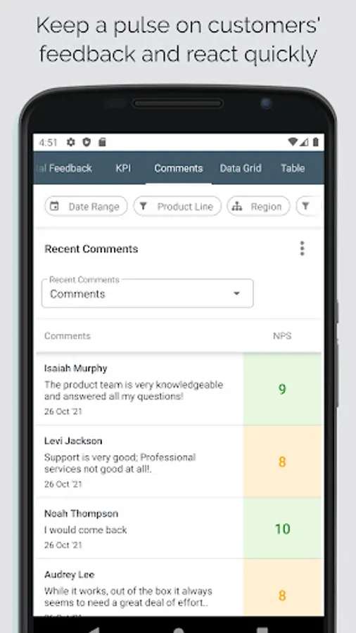 Go lets you access your dashboards quickly and easily while you're on the go. Catch up on your customers' recent comments, get the latest business metrics and refresh your memory on the key reporting data before your meeting. Go keeps you up to date with flexible dashboarding that can be customized to your specific needs.