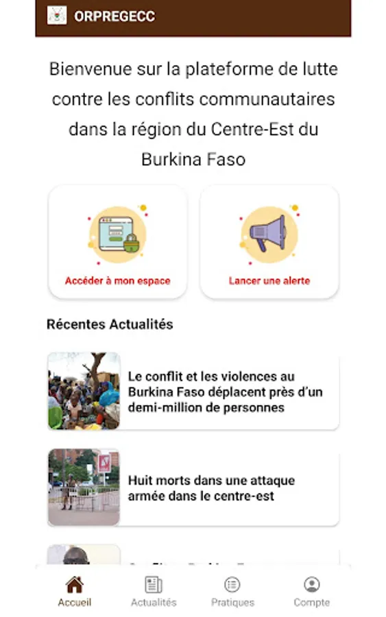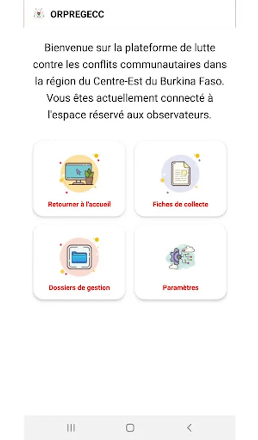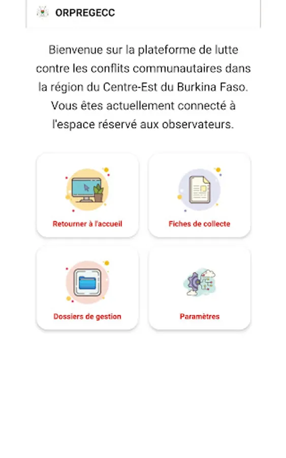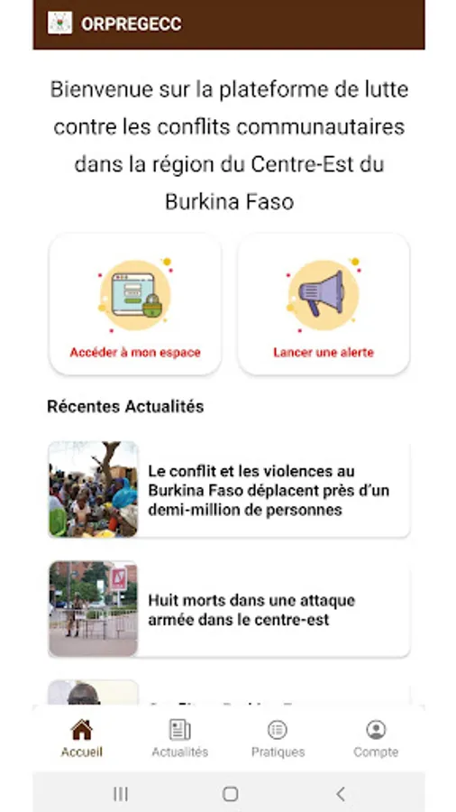 The community conflict management application aims to take into account and capitalize on the conflicts that may emanate from the Center East region of Burkina Faso.
