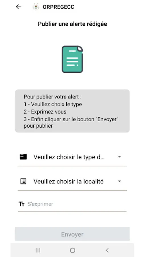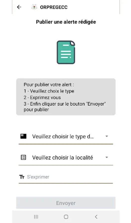 It allows whistleblowers to inform observers of a locality, a situation or a case of community conflict observed in total anonymity thanks to an alert submission form. The whistleblower, whether literate or illiterate, has the possibility of keeping the observatory informed of a given situation.