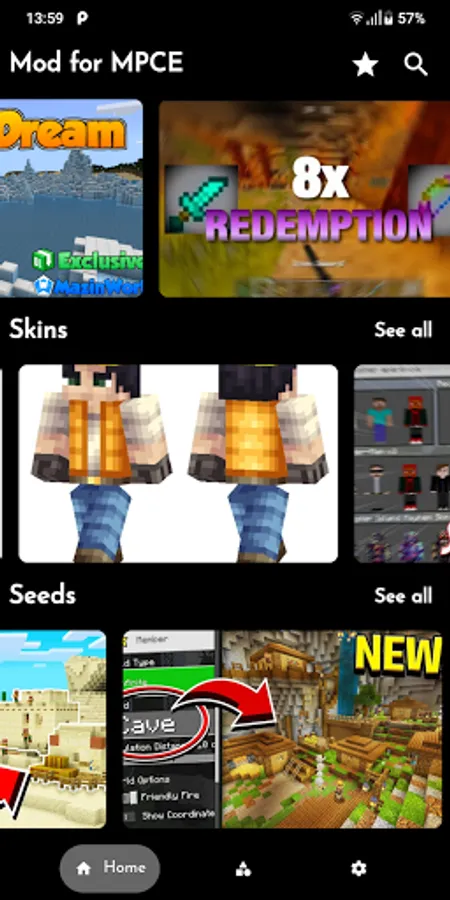 Mods Master for Minecraft is the most popular free app for MCPE where you can find the latest maps, add-ons, skins, buildings, textures, and seeds. Or you can also upload all of them yourself to play the game with your own style.