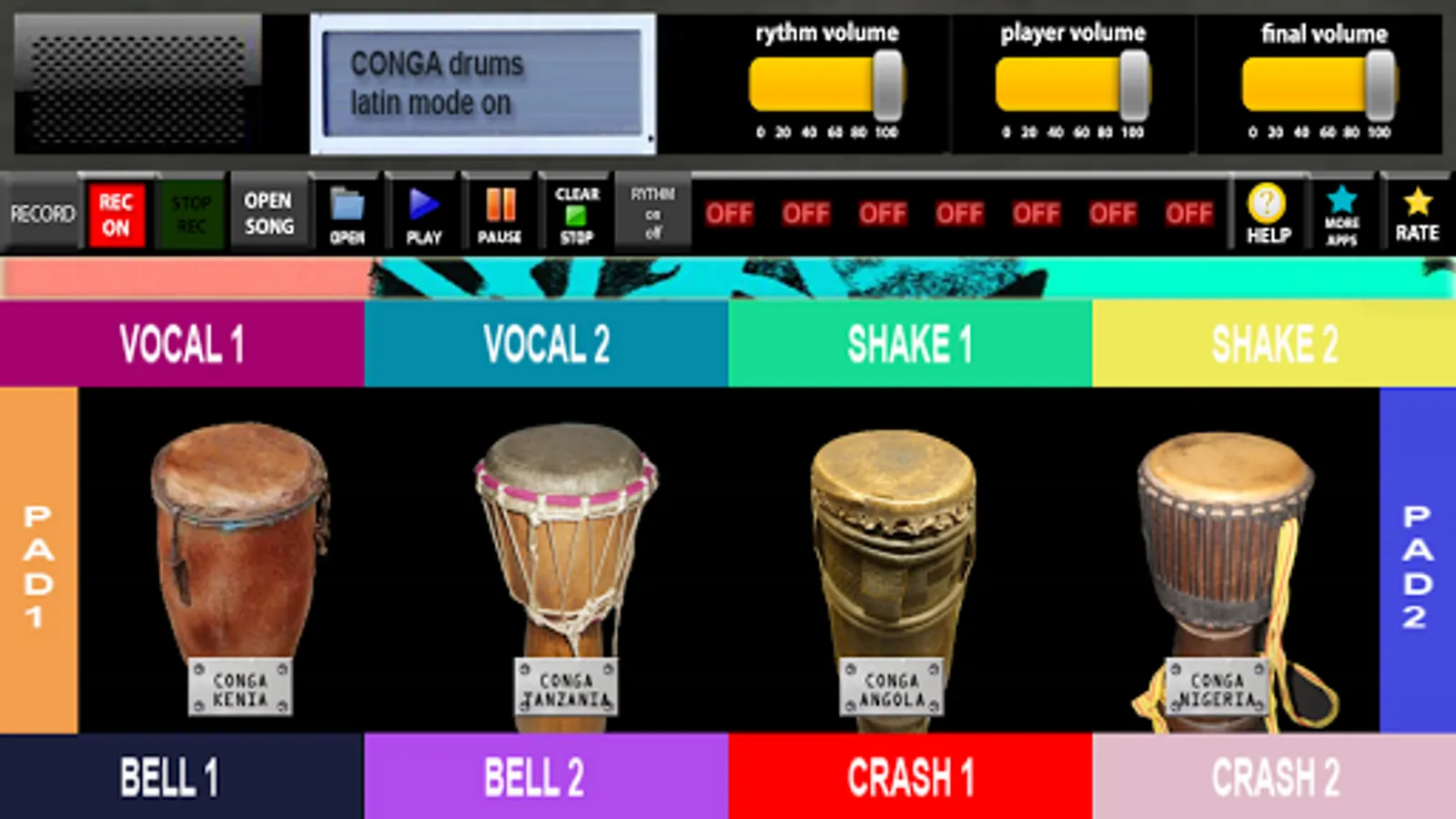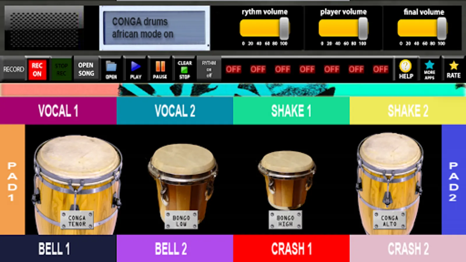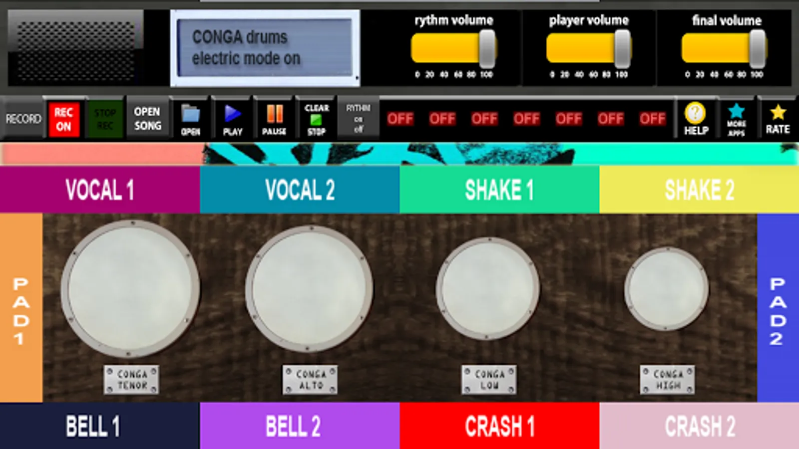CONGA DRUMS PRO is android application designed for Android phones and tablets . CONGA DRUMS PRO contains four conga instruments . You can play four CONGA DRUMS PRO instruments with four virtual sound keyboard .
