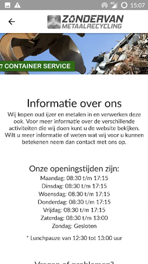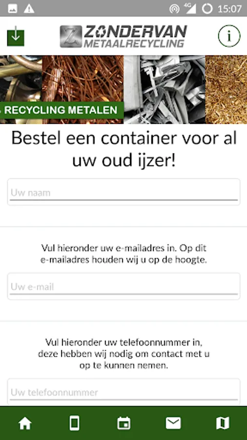 - you can easily request services from us via the app, such as placing a container or collecting old iron.
