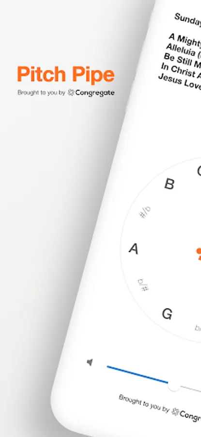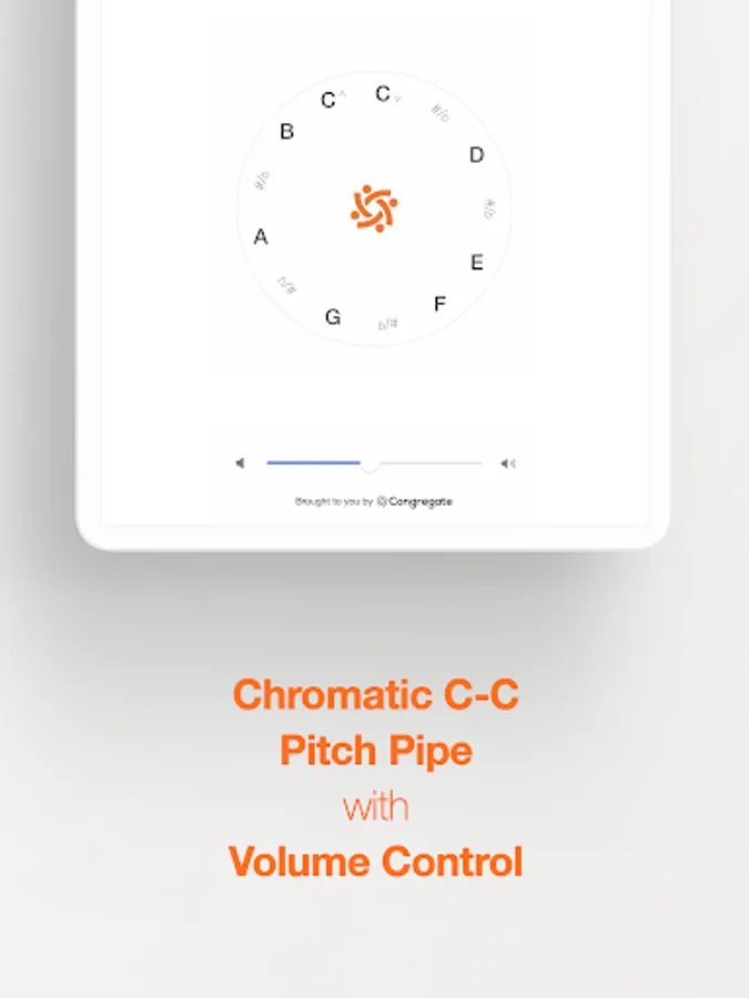 The Congregate Pitch Pipe app brings your pitch pipe and song list straight to your mobile device! And with our live pitch detection, you'll see the note you're singing on screen!