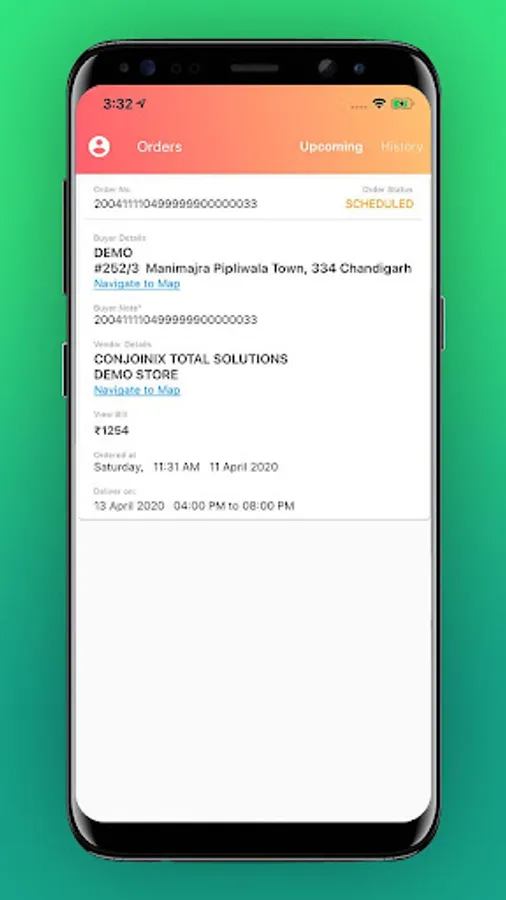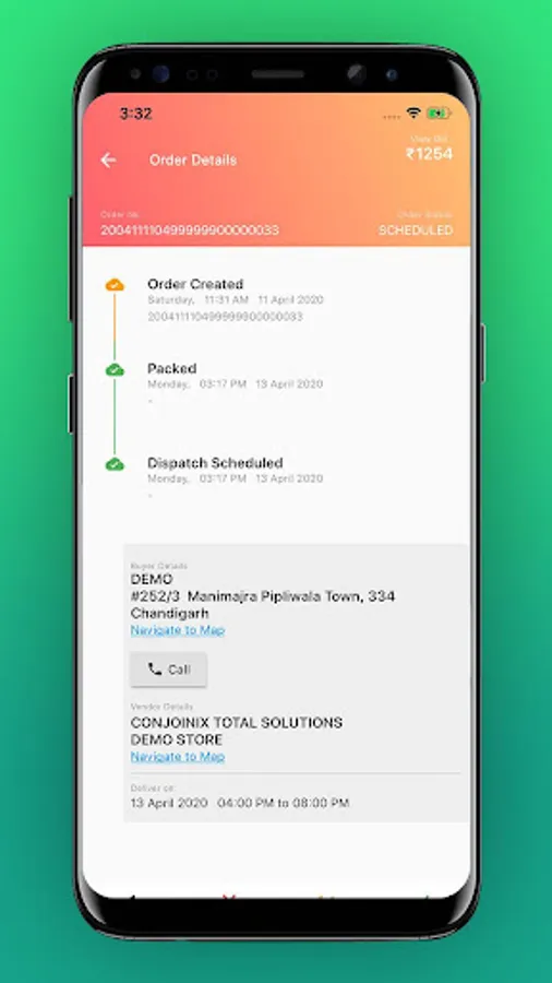 4. The vendor would then give time slot for Pickup or Home delivery
