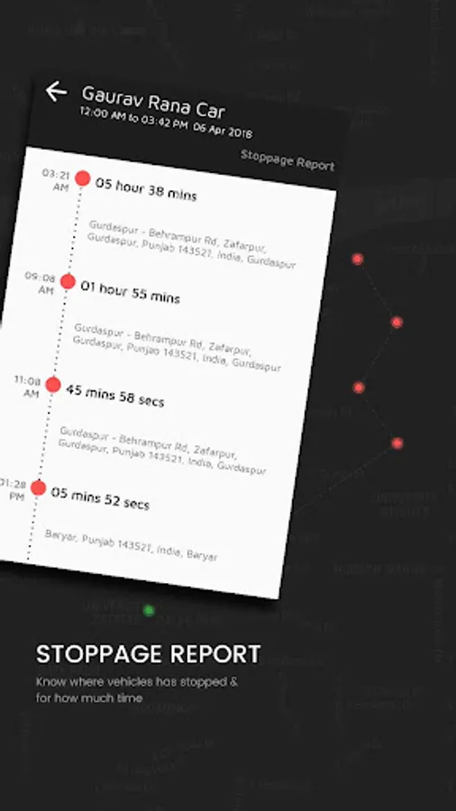 Duration for which the asset stopped between its source and destination can also be viewed in the report form.