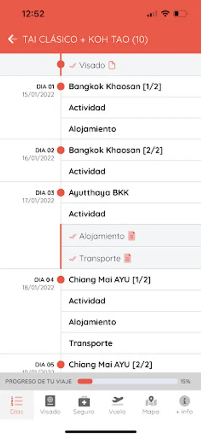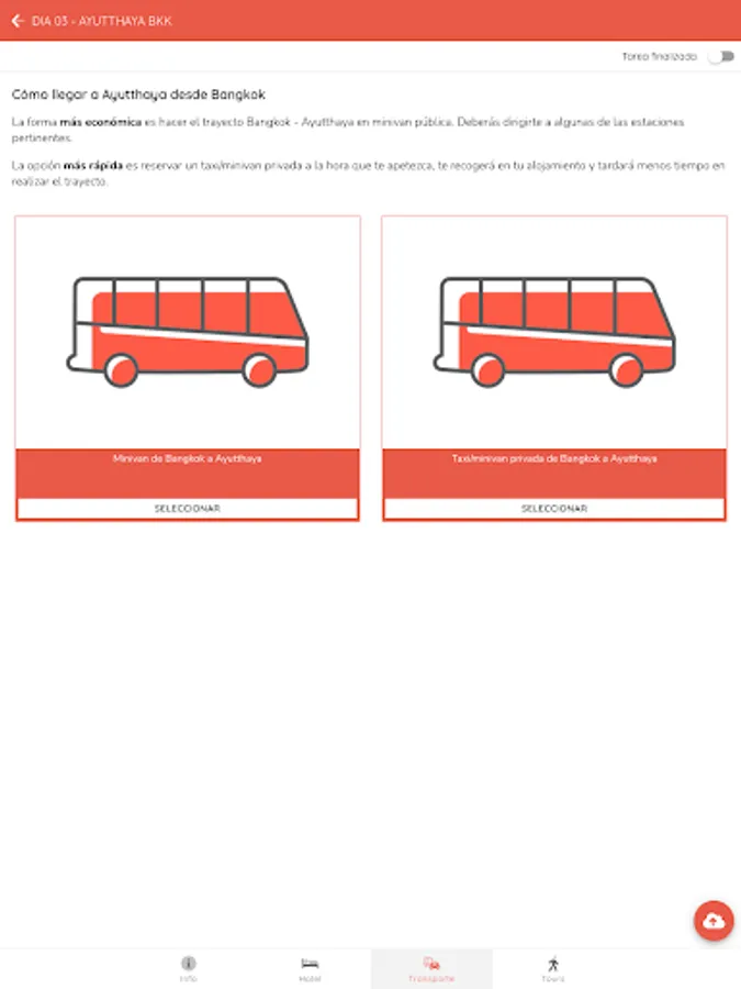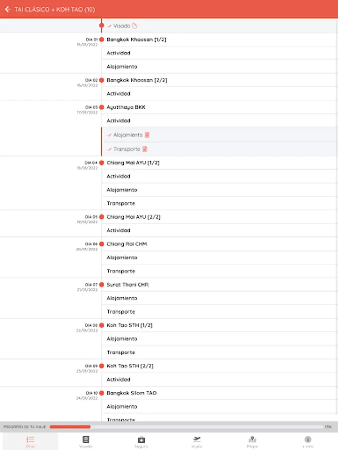 - Timeline of your trip: The detail, day by day, of your itinerary on your mobile.