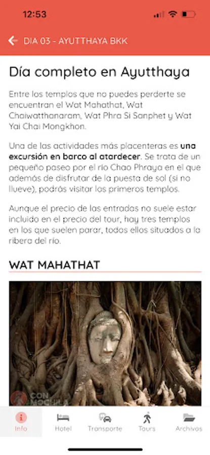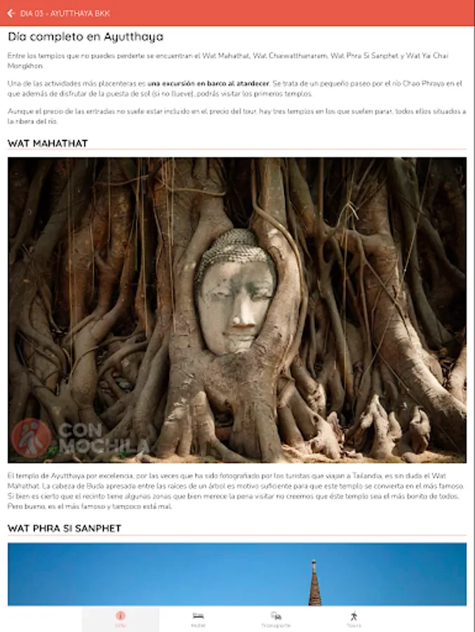 Conmochilapp is the perfect app for independent travelers. It will help you plan an itinerary, day by day, with information on places to go and activities to do, as well as transport, hotels, flights ... and everything you need to organize your trip on your own.