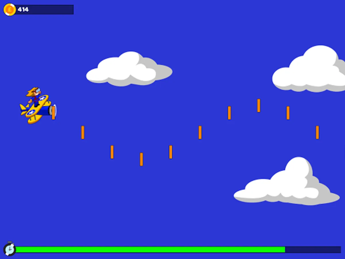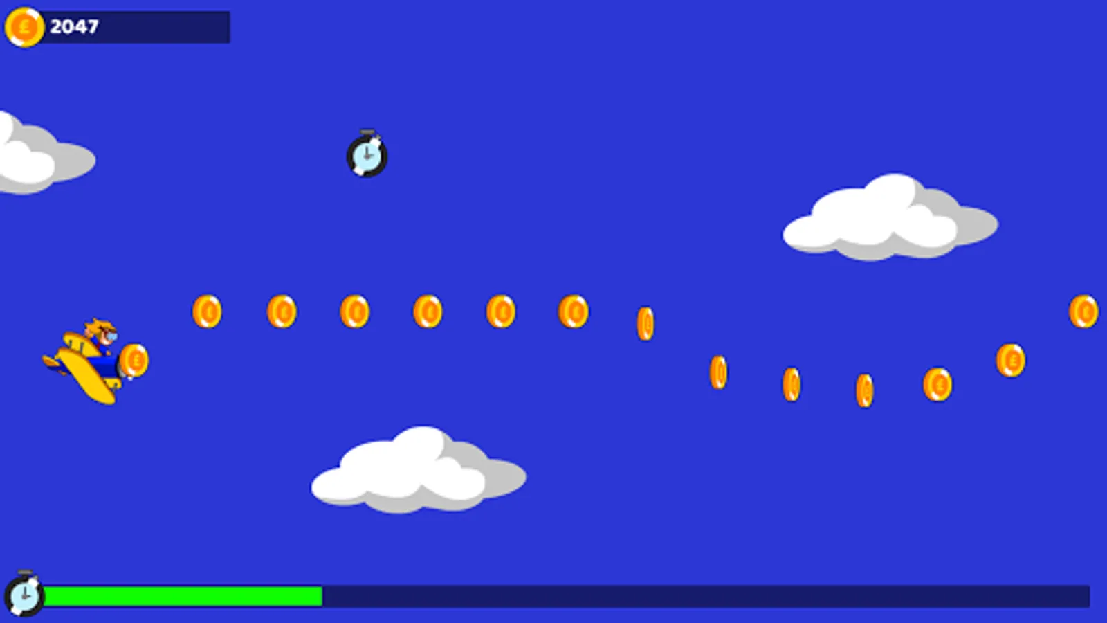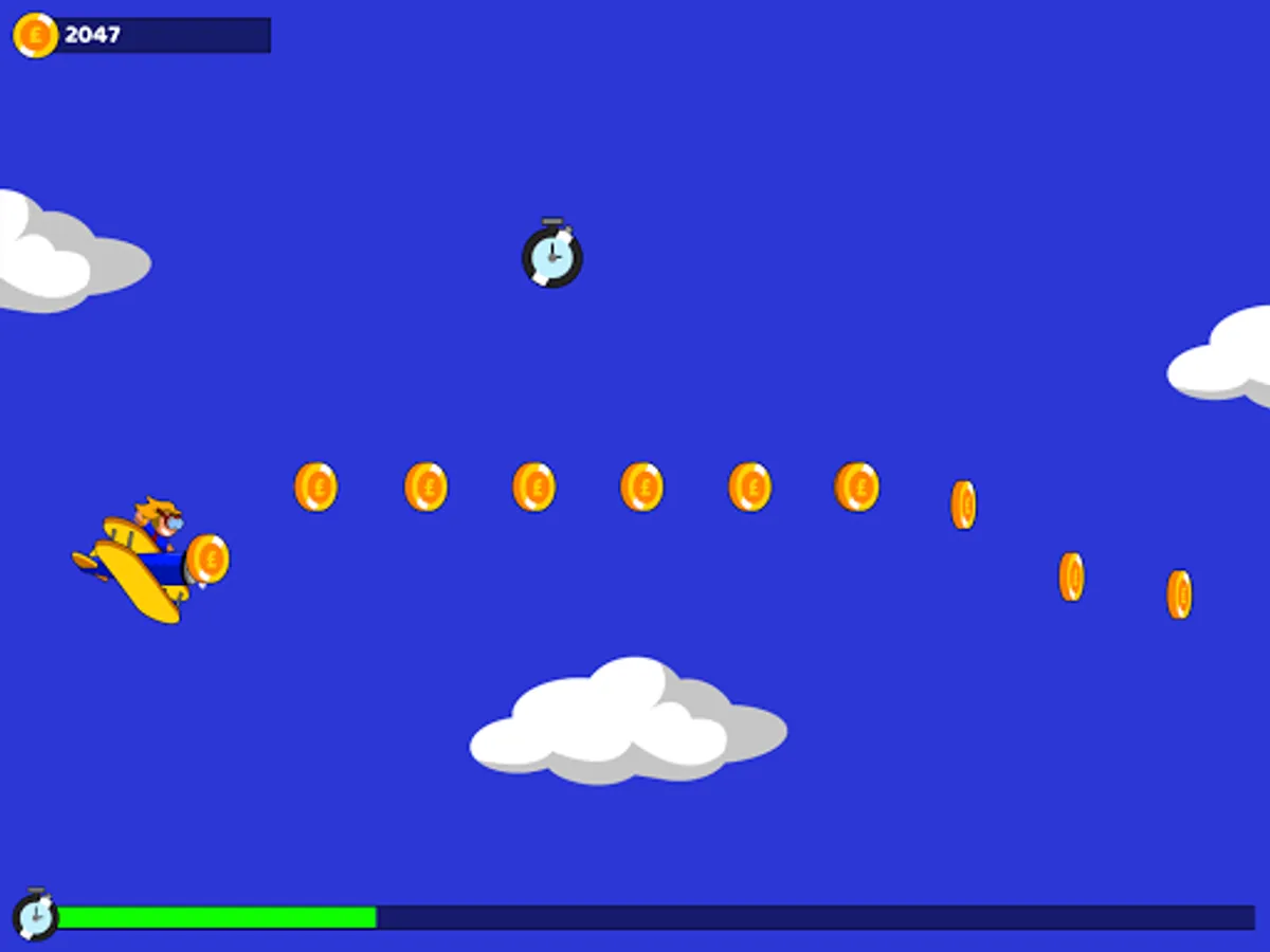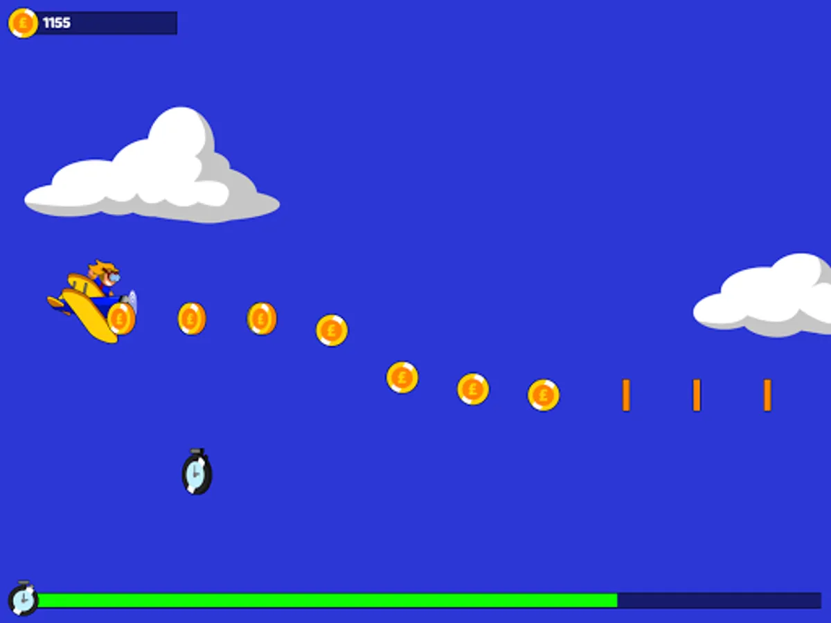 Conna is performing a charity wing-walk, and it's your job to help her navigate the skies with your Stearman bi-plane! You'v only got thirty seconds to collect as many donations as possible, with bonuses for skillfully flying in pattern. Collect coins and clocks to increase your score and timer, but try to avoid clouds, which will slow down your plane, making it harder to race against the clock! How much money can you help Conna raise?