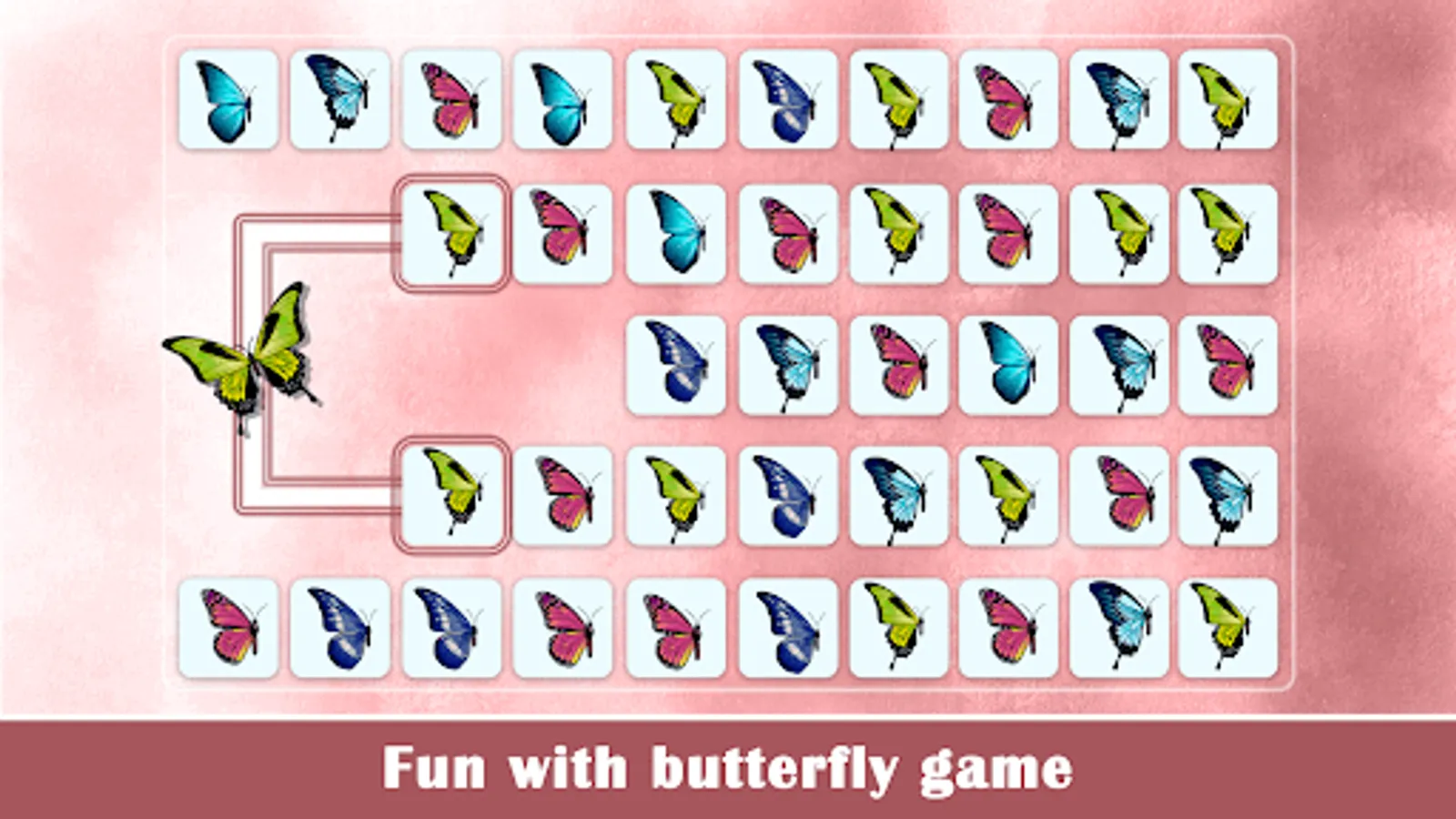 ONNECT Butterflies is a connection-based PAIR MATCHING GAME with challenging levels.