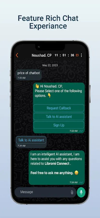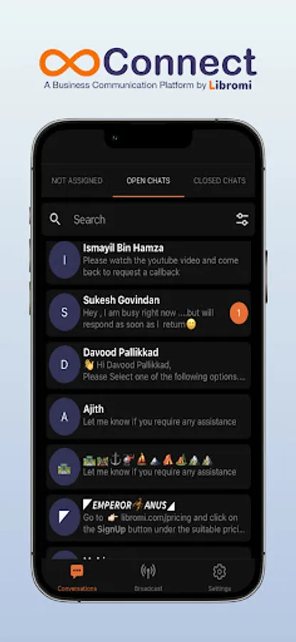 Unlock the full potential of your business communication with Libromi.com 's User Agent App. Connect is a powerful platform that enables Multi User agent Chat Solution, powered by the official WhatsApp Cloud API. Sign up your company as a business on Libromi.com and create a user agent account to start using this game-changing app. Streamline your conversations, boost productivity, and take customer engagement to new heights. Download now and revolutionize your business communication!