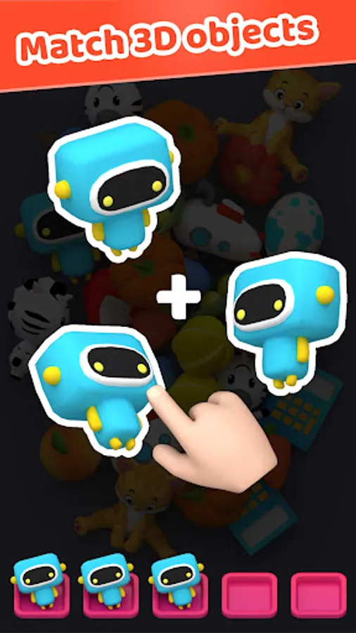* Tap the three same 3d elements from a pile of messed-up items and eliminate them.