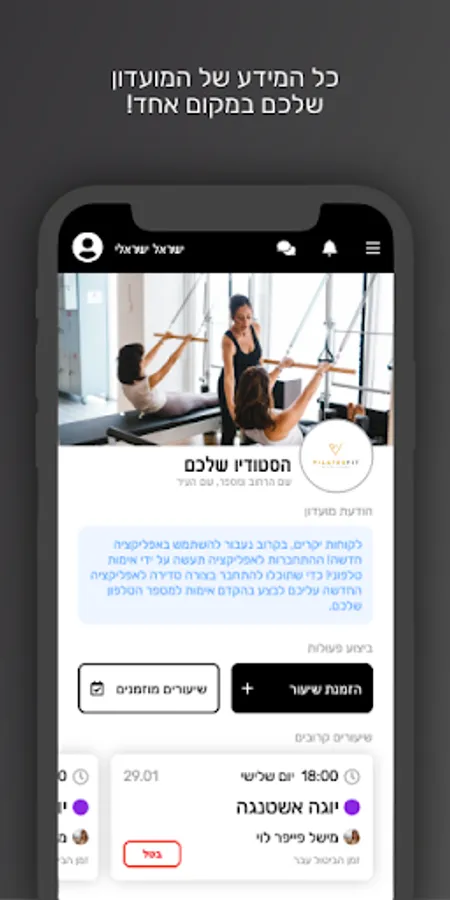 The Bost app gives the customer an easy and simple user experience with the ability to log in from anywhere and at any time, select tutorials / classes and get all the relevant information directly from the cellphone, without the need for telephone answering and handling from the club staff.