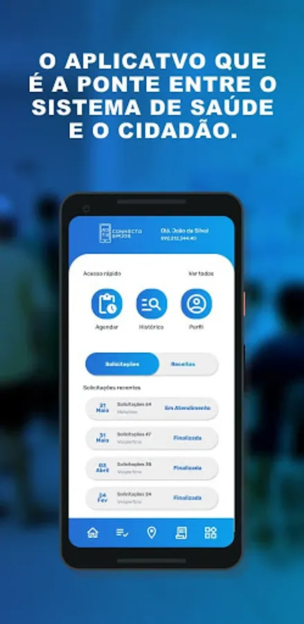 Connecta Saúde Cidadão brings together the best features of the digital market to help citizens use public health services at all levels of care, in a simple and intuitive way. Make appointments, view your history, receive tele-service and download recipes and certificates, all in the palm of your hand.