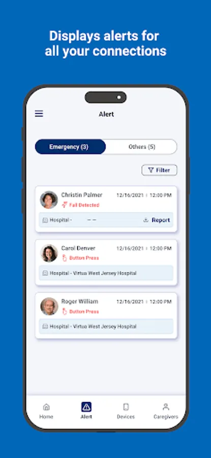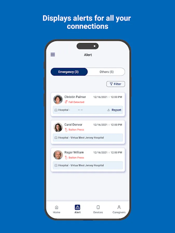 Check on the device history and status of all the loved ones in your care and review information for each user.