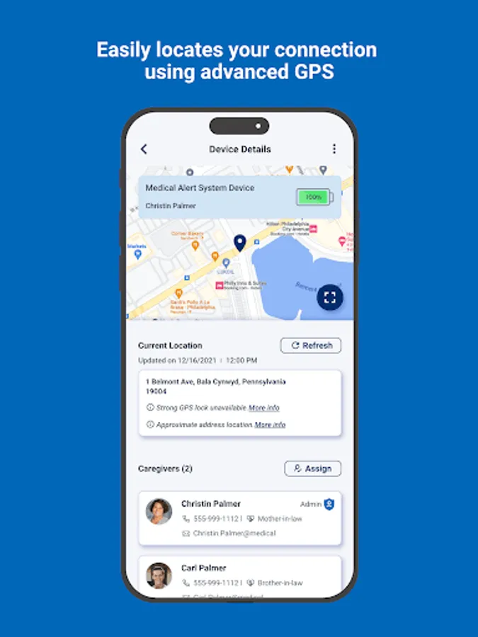 Connect App will let you review all the devices you have under your subscription and let you know the device’s battery life, giving you the ability to notify the user if the device needs to be charged.