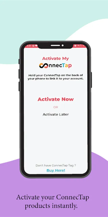 To get started hold your ConnecTap Tag on the back of your phone to activate it and link it to your account. Your tag will store your details and it is ready to share. The best thing is other people don't need the app to get your info.