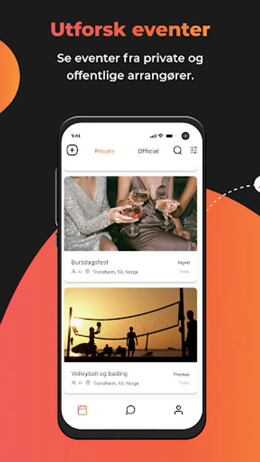 Explore what your local area has to offer in terms of private and public events. Manage your own initiatives, connect with others, and chat. Whether you want to organize or participate, ConnectApp will help you create the moments you will remember.