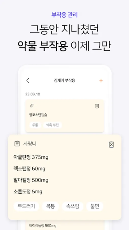 - You can record the side effects experienced in the app and manage them for the next prescription.
