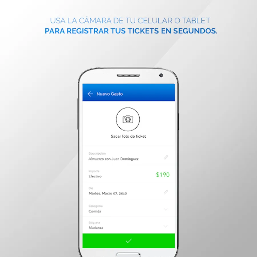 Guarda una foto de tus tickets de viajes en taxi, estadía en hoteles, almuerzos y cenas de negocio en segundos.